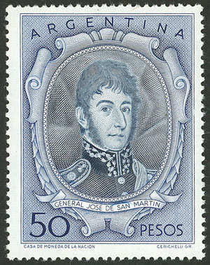 GJ.1057A, 50P. San Martín, perf 13½x13, VF (Image)