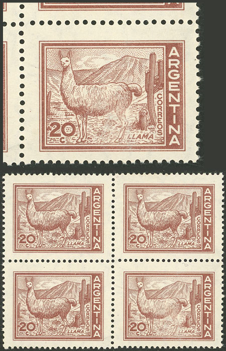 20c. Llama, block of 4, one with variety: light and blurred impression, very different from the rest, VF quality (Image)