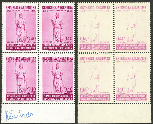 2.40P. Revolution 1st anniversary, variety: offset impression on back, block of 4, VF (Image)
