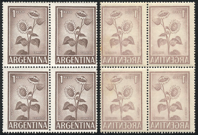 1P. Sunflower, glazed paper, offset impression on back, in block of 4, VF quality (Image)