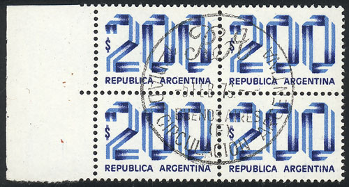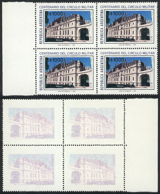 $1000 Círculo Militar, with offset impression on back, marginal block of 4, VF quality (Image)