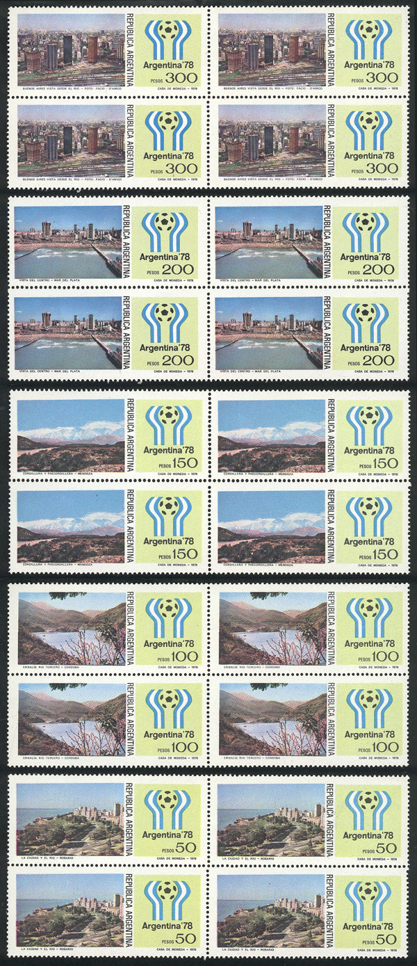 GJ.1806/10, Argentina 1978 Football World Cup, cmpl. set of 5 values in blocks of 4, VF quality (Image)