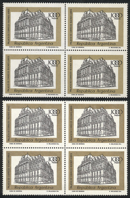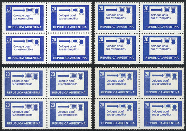 + 1795A, 1000P. General Post Office, blocks of 4 on fluorescent and phosphorescent unsurfaced papers, VF quality (Image)