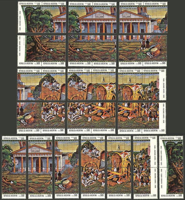 GJ.1955/68, Buenos Aires 80 intl. philatelic expo, all the possible combinations of pairs from souvenir sheet GJ.HB 45 (19 in total), VF (Image)
