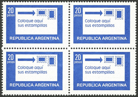 GJ.1782C, 20P. Place Stamps Here, phosphorescent chalky paper, block of 4, VF (Image)