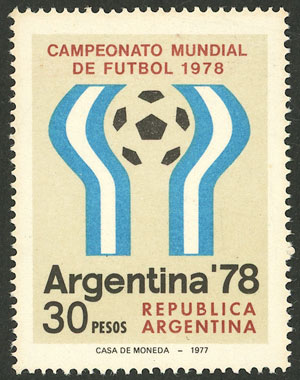 GJ.1769A, 30P. Argentine 1978 Football World Cup, unsurfaced paper, UV neutral on front and phosphorescent back, VF (Image)