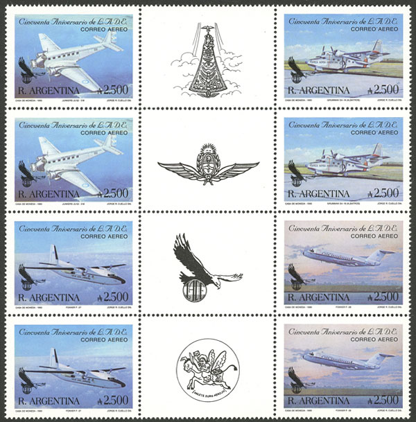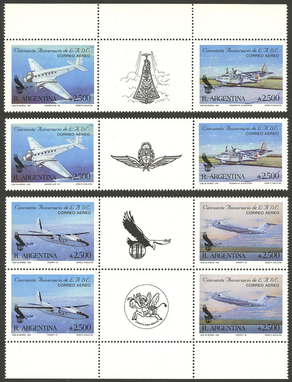 GJ.2503/6EN, airmail, LADE airline, 2 sets with 4 gutters, VF (Image)