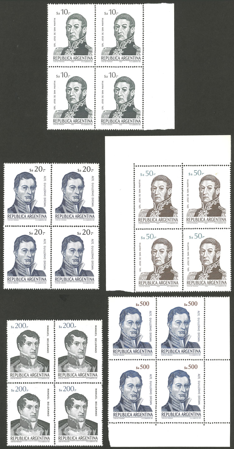 GJ.2146/50, Próceres, complete basic set of 5 values in blocks of 4, VF (Image)