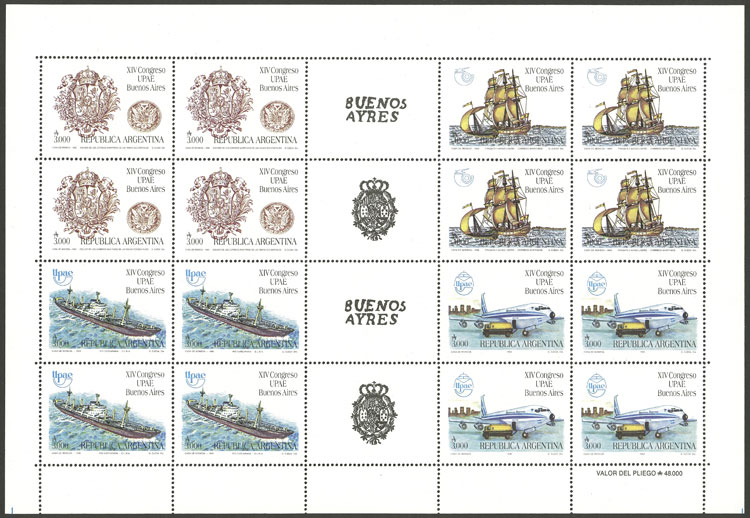 GJ.2599/502EN, UPAE Congress in Buenos Aires, 4 sets with gutters (complete sheet), VF (Image)