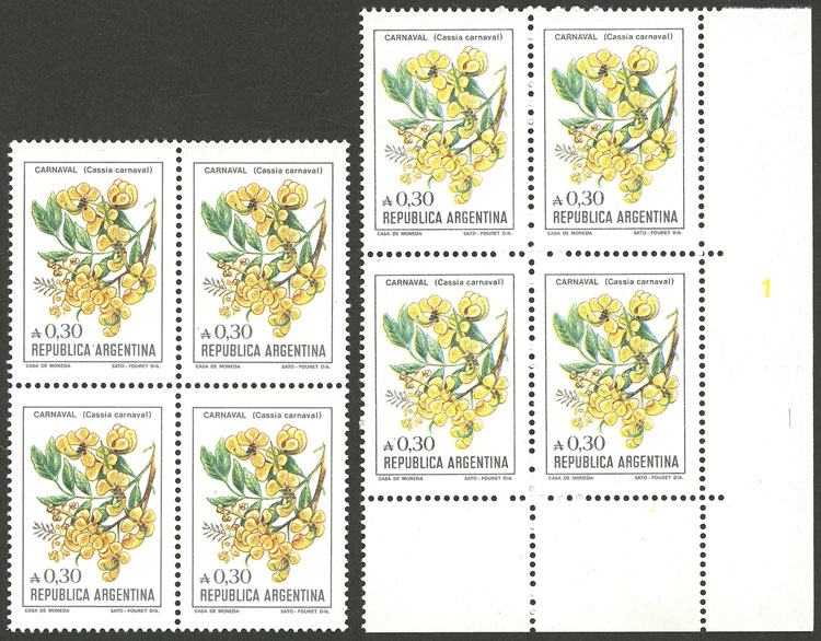 GJ.2208/30, Flowers (in Australes), cmpl. basic set of 23 values in blocks of 4, VF (Image)
