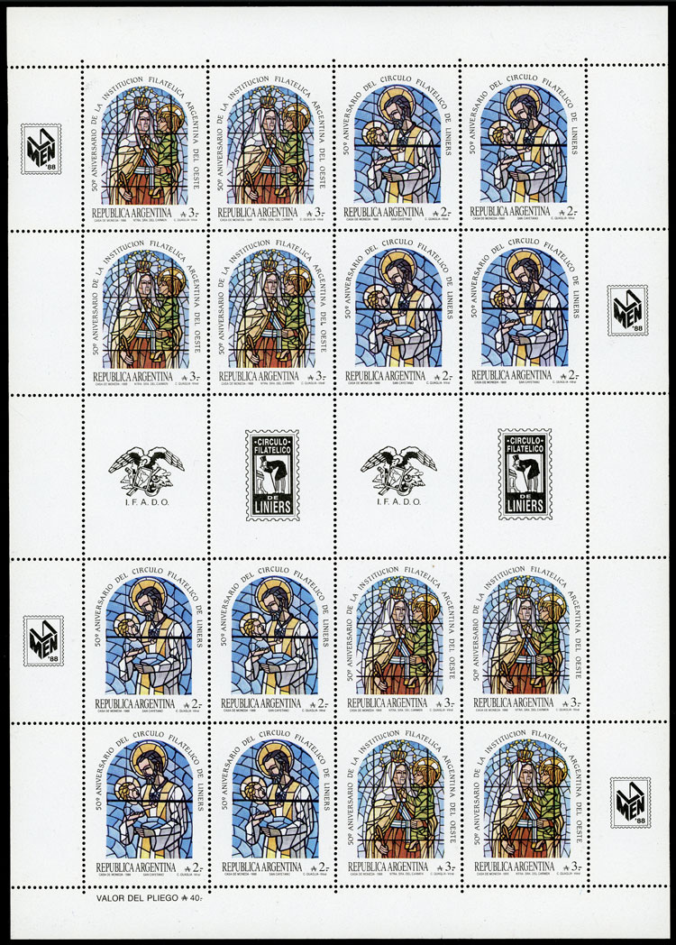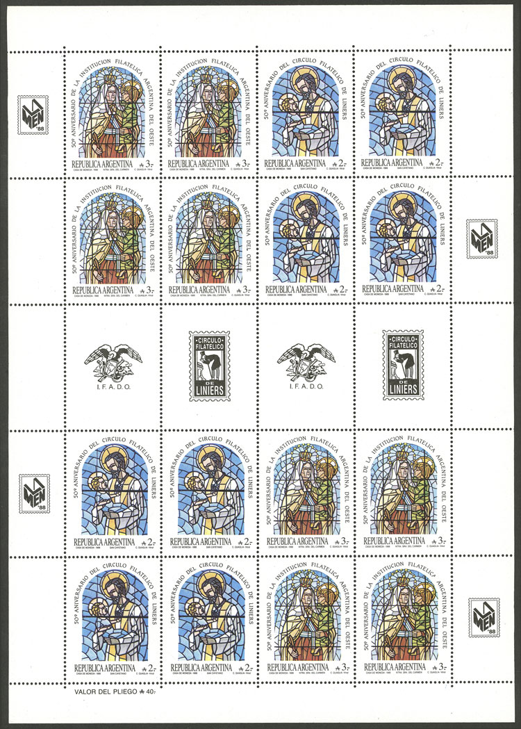 GJ.2410/1EN, Liniers philatelic circle & Inst.Filatélica Argentina del Oeste, complete sheet with 8 sets and gutters, VF (Image)