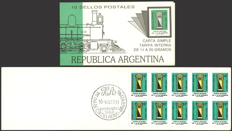 C' mailbox, 10 stamps in booklet, with first day postmark, rare, VF quality! (Image)
