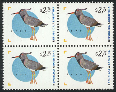 $2.75 Tero Southern lapwing, block of 4, VF quality (Image)