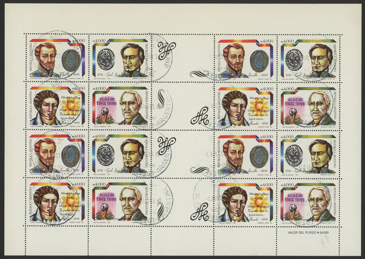 GJ.2540/3EN, Historical figures and events II, 4 sets with 4 gutters (complete sheet), used, VF quality (Image)