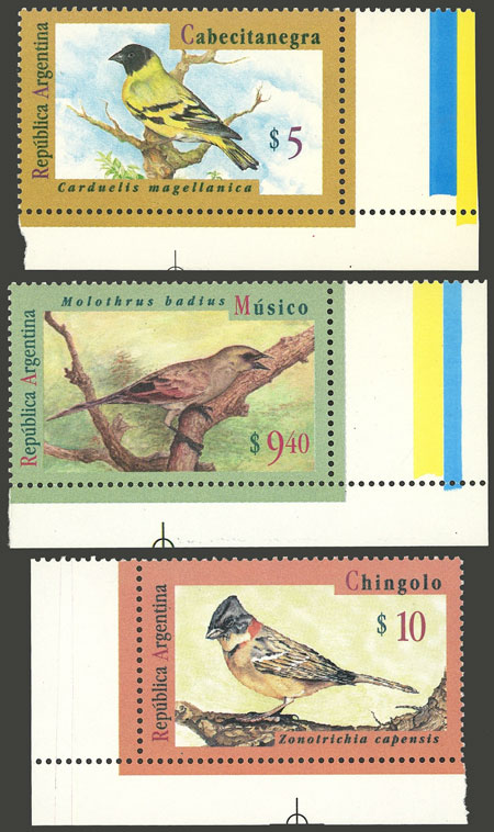 GJ.2730/2, $5, $9.40 and $10 Birds, all with sheet corner, VF (Image)