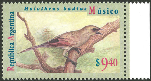 GJ.2731a, $9.40 Músico bird, sheet margin, VF (Image)