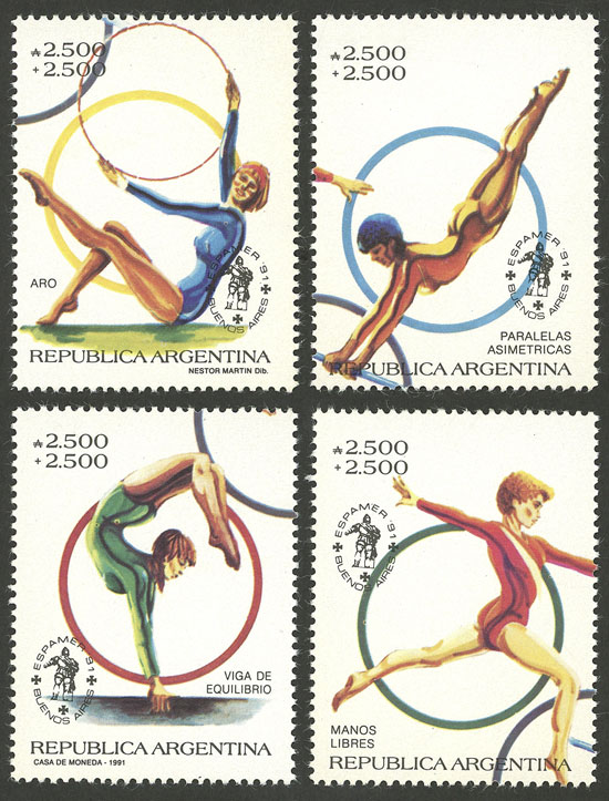 GJ.2544/7, ESPAMER 91, Women´s Gymnastics, cmpl. set of 4 values from the souvenir sheet, VF (Image)
