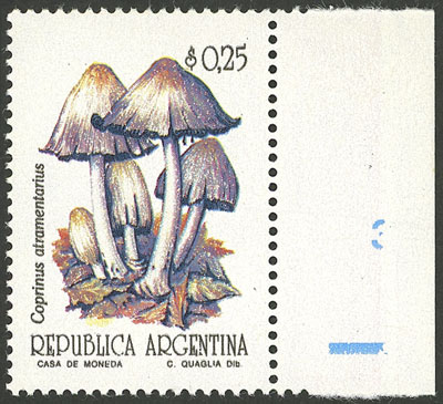 GJ.2592A, $0.25 Mushroom (Coprinus Atramentarius), with Casa de Moneda wmk, sheet margin, VF (Image)