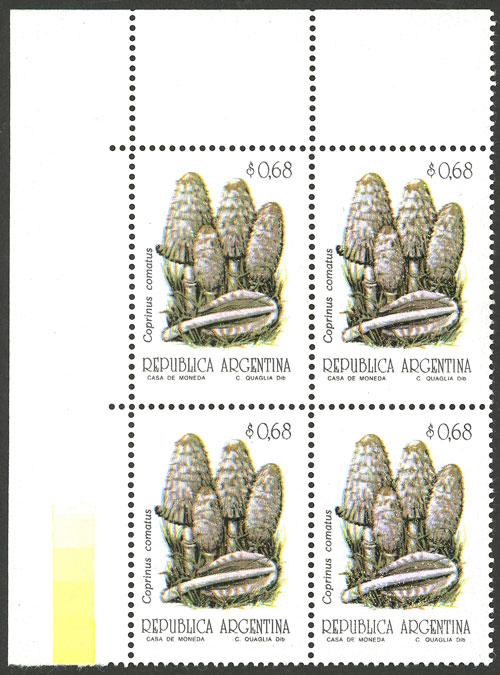 $0.68 Mushrooms (Coprinus Comatus), corner block of 4, VF (Image)