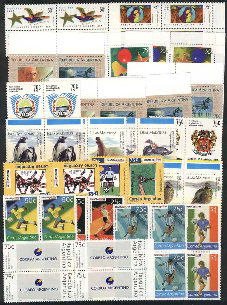 + 2640/44 + 2649/57 + 2662, commemorative stamps issued in 1993 (not including the stamps from the souvenir sheets), in blocks of 4, VF quality (Image)