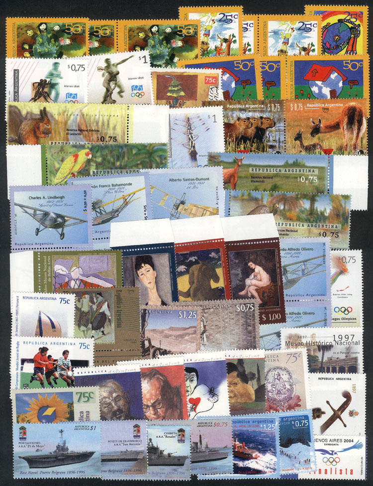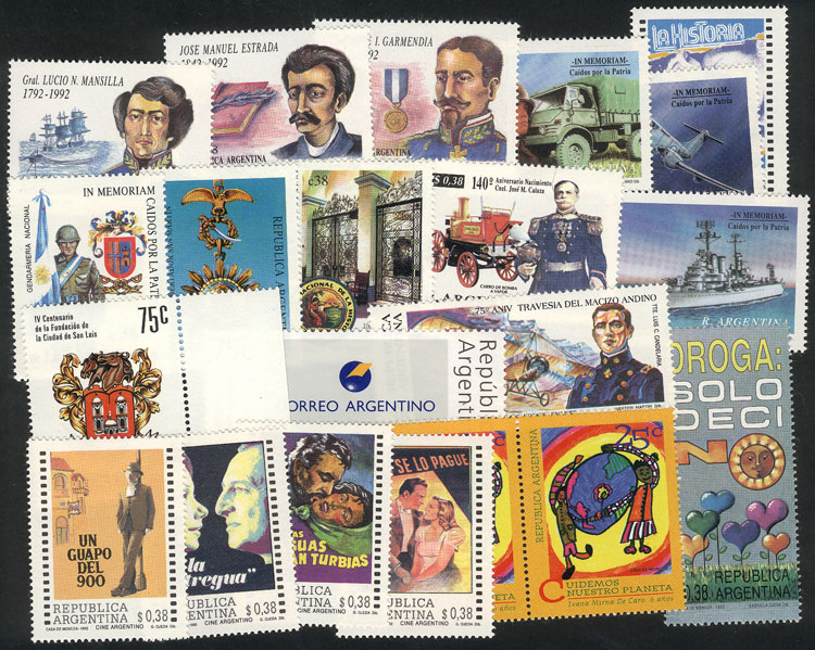 than 70 commemorative stamps issued in early 1990s, VF quality (Image)