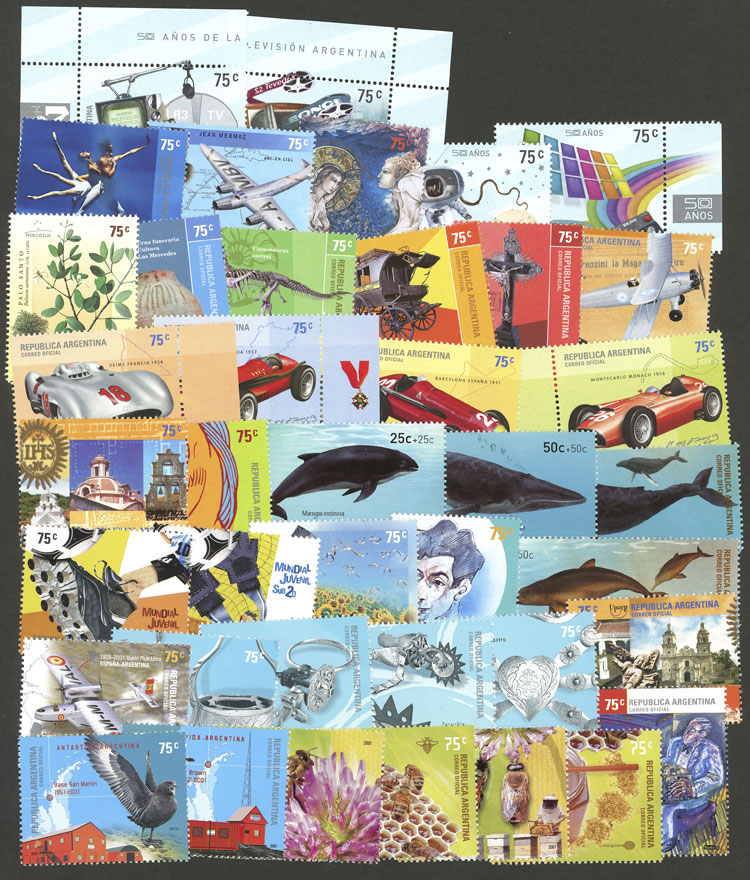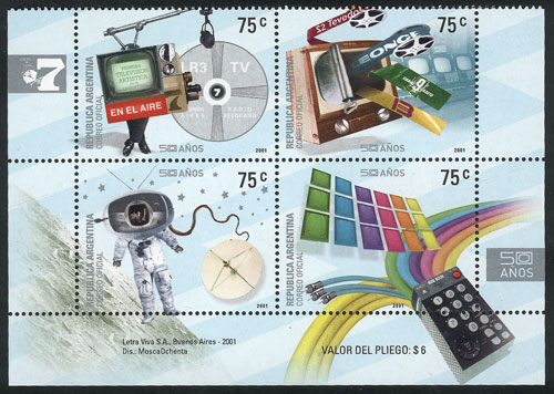 Argentine Television 50th anniversary, corner block of 4 with the 4 values of the set, VF quality (Image)