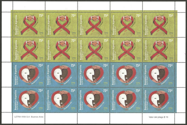 GJ.3051/2, UPAEP, AIDS, mini-sheet with 10 sets, VF quality (Image)