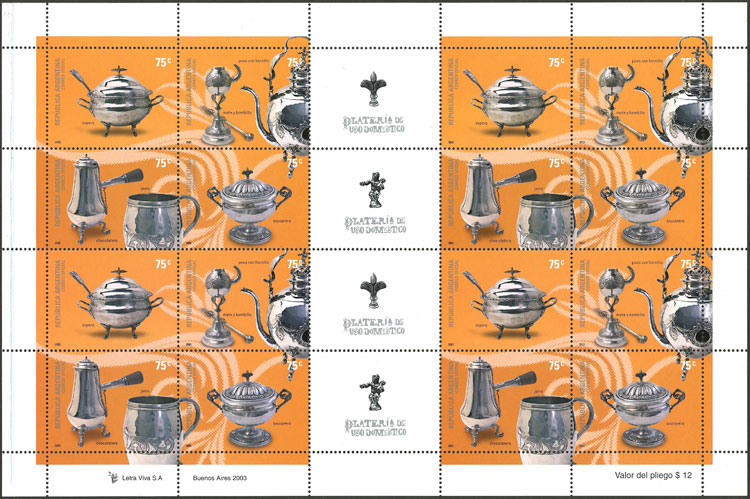 GJ.3292/5EN, Household silver, 4 sets with gutters (complete sheet), VF (Image)