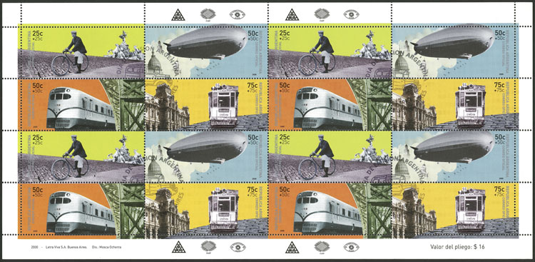 GJ.3076/9, Means of Transport, cmpl. sheet with 4 sets, first day postmark, VF (Image)