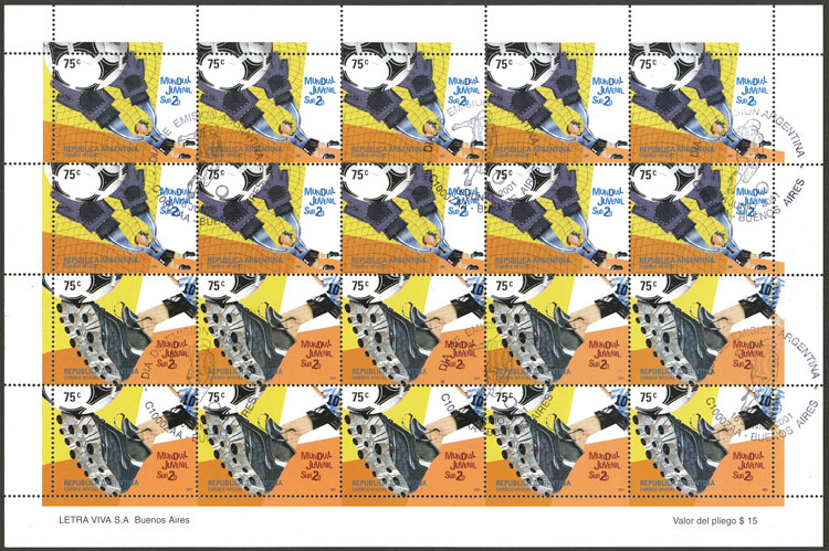 GJ.3130/1, Under-20 Football World Cup, cmpl. sheet with 10 sets, first day postmark, VF (Image)