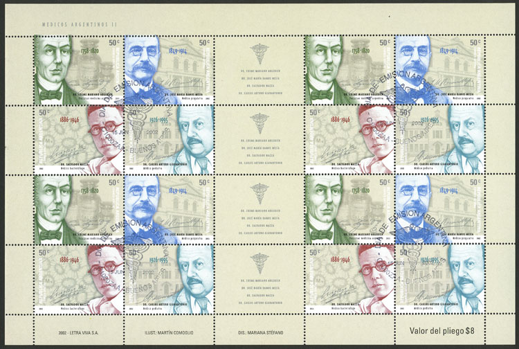 GJ.3204/7EN, Physicians (II), cmpl. sheet with 4 sets and labels, first day postmarks, VF (Image)