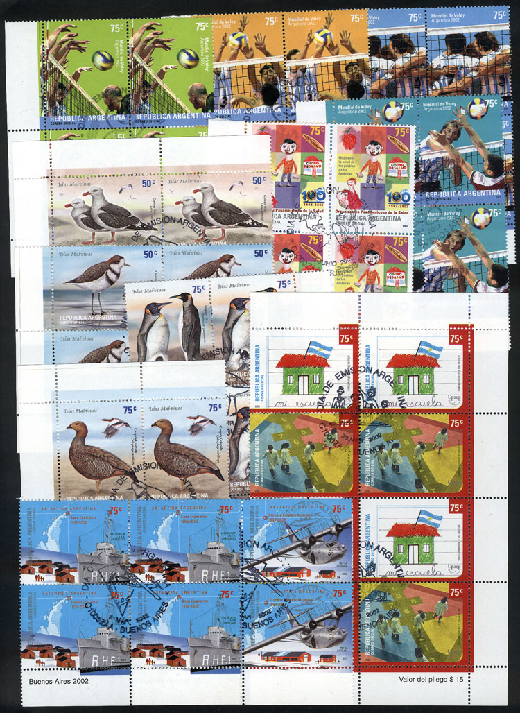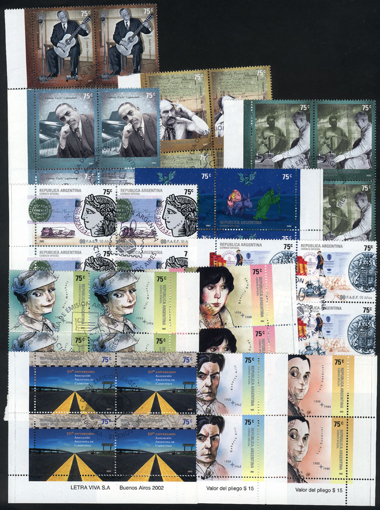 GJ.3187/94 + 3203 + 3236/44 + 3258/62, stamps issued in 2002, in blocks of 4 with first day postmark, catalog value (mint) US$70.20 (Image) (Image-02)