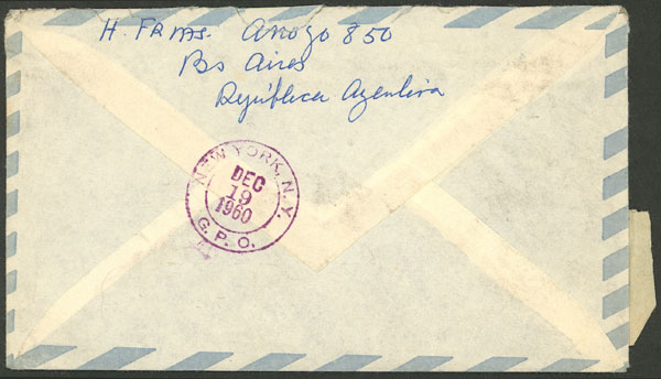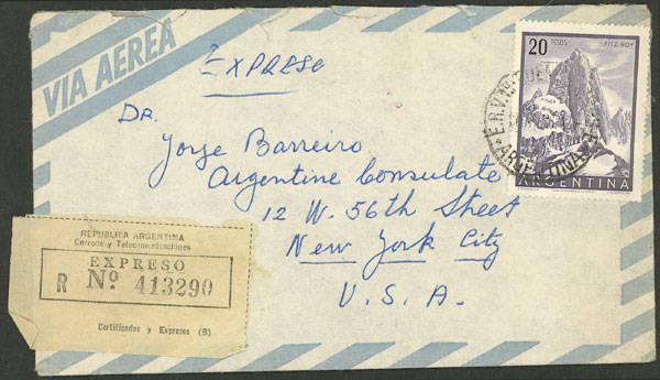 Express airmail cover franked with $20, sent from B.Aires to New York in DE/1960, VF quality (Image) (Image-02)