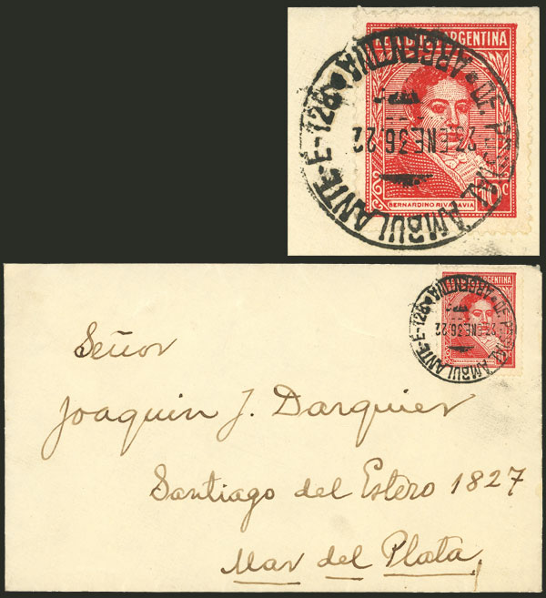Cover sent to Mar del Plata on 23/JA/1936, franked with 5c., cancelled "OF. POSTAL AMBULANTE -E- 128", VF (Image) (Image-02)