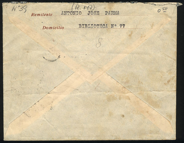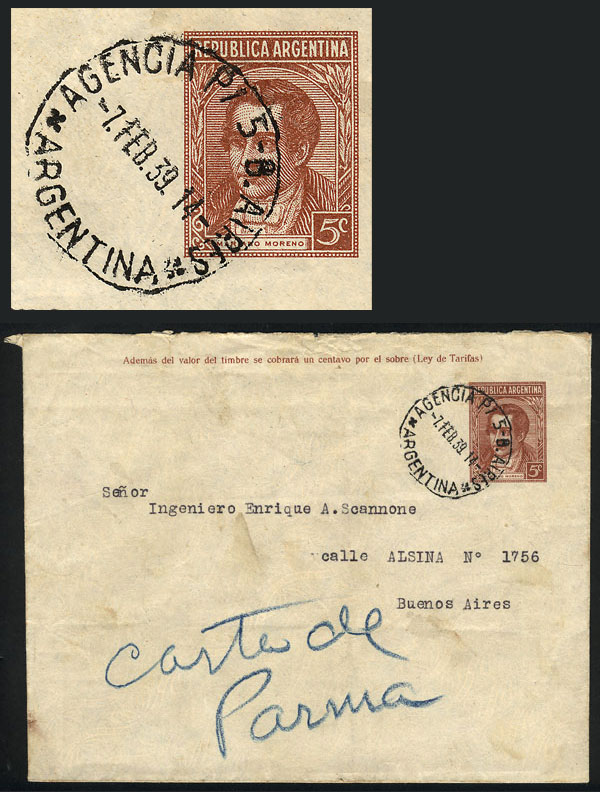 Stationery envelope sent to Buenos Aires on 7/FE/1939, cancelled 'AGENCIA P/ 5 - B. AIRES', VF quality (Image) (Image-02)