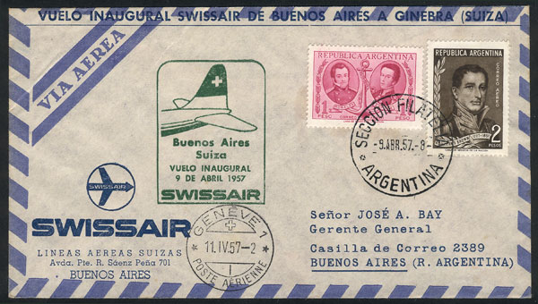 flown on SWISSAIR first flight Buenos Aires - Geneve on 9/AP/1957 (Image)