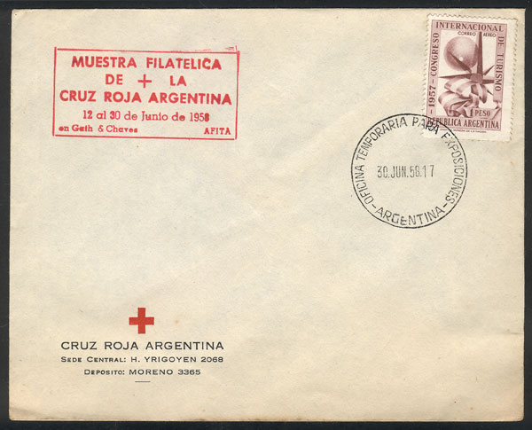 Philatelic Fair, Buenos Aires, cover with special cancel of "OFICINA TEMPORARIA PARA EXPOSICIONES", used on 30/JUN/1958, VF quality (Image)