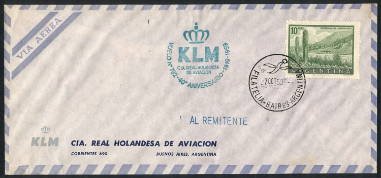 flown on flight Nº792 of KLM on 7/OC/1959, commemorating its 40th anniversary (Image)