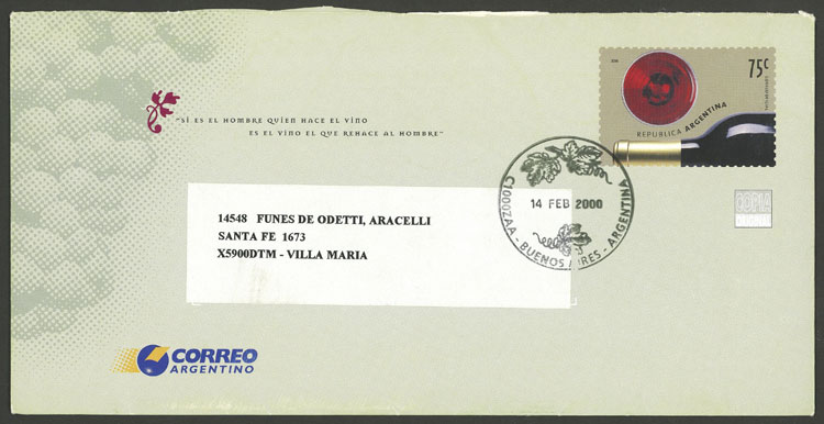 1007   image75c. Stationery envelope (GJ.6) sent from Buenos Aires to Villa María (Córdoba) on 14/FE/2000, VF quality (Image)
