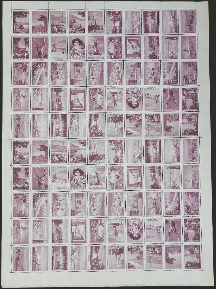 1020   imageNational Board of Tourism, complete sheet with 4 sets of 25 se-tenant cinderellas, some with minor defects, VF general quality (Image)