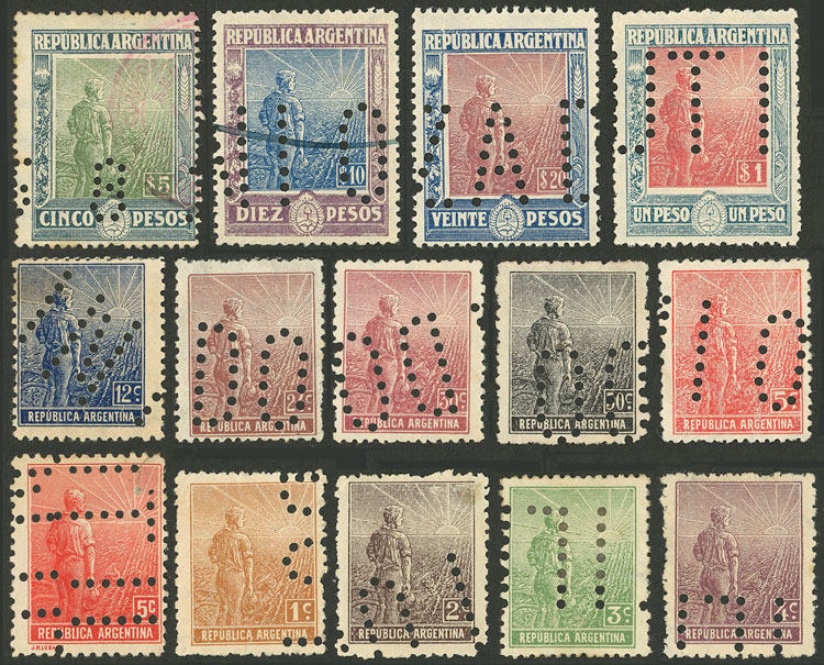 1014   imagePlowman: 14 Different stamps with invalidating perfs, VF (Image)