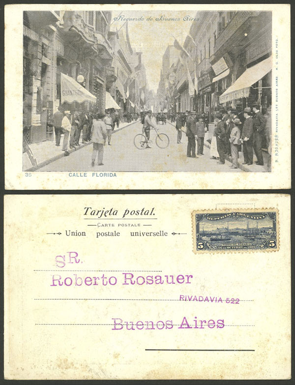 1008   imageBuenos Aires, Florida street, crowded, with view of several shops, ads of the period and people, ed. Rosauer, used, VF quality (Image)