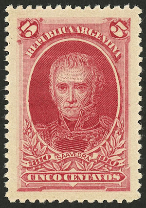 1910 5c. Saavedra WITHOUT WATERMARK variety, MNH (+50%), superb! (Image)