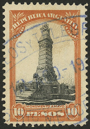 GJ.314ME, 1910 10P. Monument, used with parcel post cancellation, VF quality! (Image)
