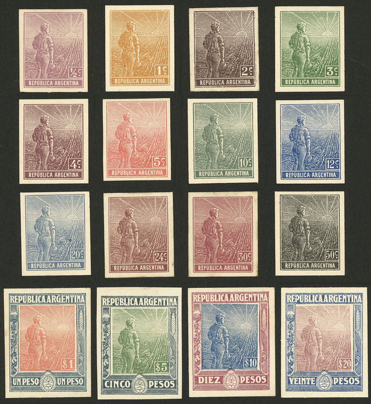 other values, 1912 Plowman, complete set of 16 COLOR PROOFS in the issued colors (or very similar), VF quality! (Image)