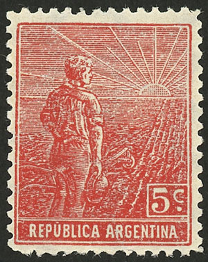 1912 5c. Plowman on German paper with horizontal honeycomb watermark, PERFORATION 13½, VF and very rare! (Image)