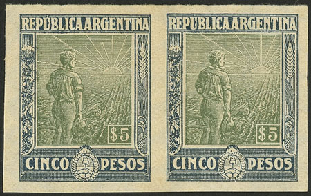 1912 5P. Plowman, IMPERFORATE PAIR of very fine quality, very rare! (Image)