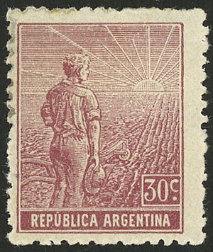 RARITY: GJ.395, 1915 30c. Plowman, on French paper WITHOUT WATERMARK, mint, very fine quality, one of the 15 known examples, signed by Marcelo Loeb on back and with Alberto Solari certificate (Image)