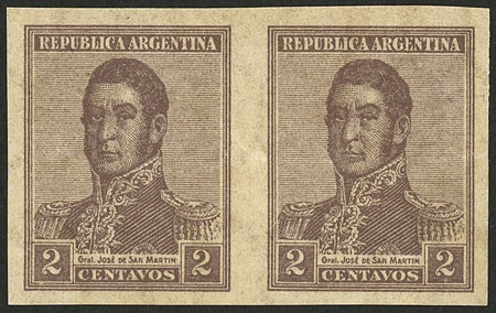 1917 2c. San Martín, IMPERFORATE PAIR, MNH (+50%), VF! (Image)