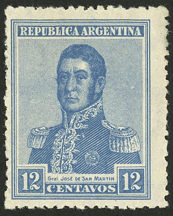 1917 12c. San Martín with VERTICAL honeycomb watermark, mint with tiny hinge mark, fresh, with good color, beautiful example! (Image)